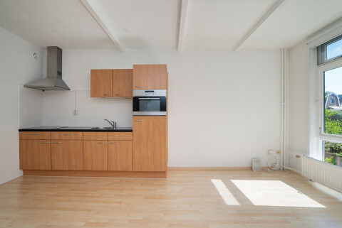 De woning is voorzien van een nette keuken en sanitair en heeft een aangenaam lichte en frisse uitstraling. Het slaapgedeelte ligt mooi afgescheiden van de woonkamer middels paneelgordijnen.